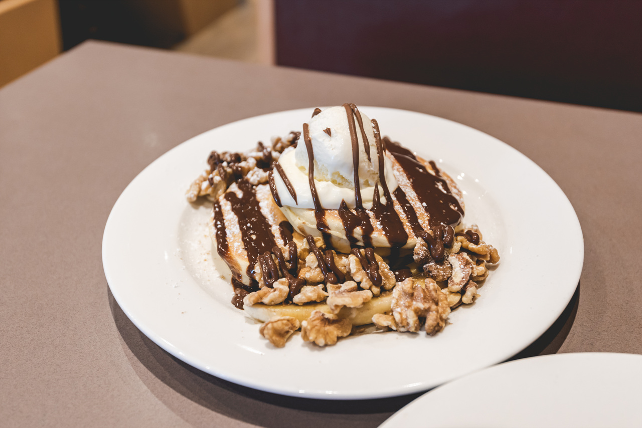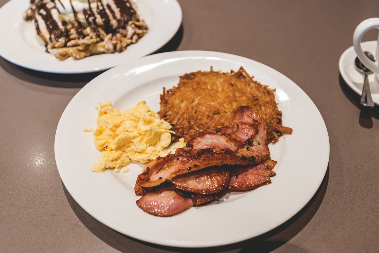 ▲ 아침식사 메뉴 중에서 스크램블에그랑 베이컨, 해시브라운을 주문했고 호두가 들어간 누텔라 팬케이크도 주문했어요.